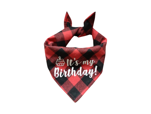 Plaid Birthday Dog Bandana - Soft Cotton Tie-on Style