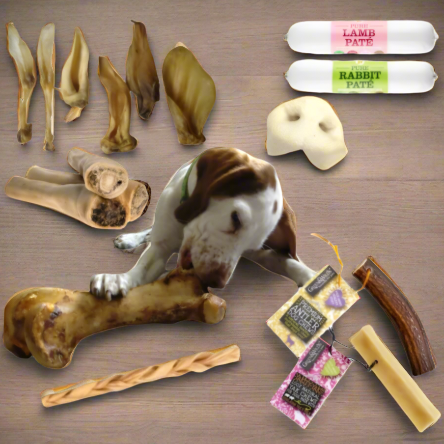 Natural Chews & PateWe sell a range of high quality natural dog chews and pure pate, with something to suit every dogs' tastes and needs. We chose JR Pet Products and Green&Wilds as